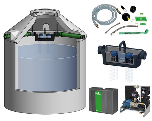 Schon ein 5-Personen-Haushalt kann bis zu 100.000 Liter Trinkwasser pro Jahr einsparen. Das Mall-Haus-Paket Tano L beinhaltet alle Elemente, die Sie für die Regenwassernutzung in Ihrem Haus und Ihrem Garten brauchen. Mit vormontierten Komponenten und automatischer, an Ihre Bedürfnisse angepasster Nachspeisung. Eine sichere und zuverlässige Lösung!